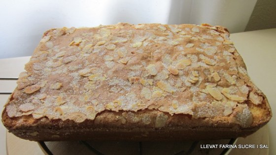 Aquesta crosta, es fa, perquè abans d’enfornar li hem posat, un grapat d’ametlles filetejades i un grapat de sucre.