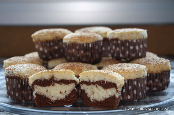 La recepta és la mateixa del Cor marbre de pa de pessic, quan omplim les càpsules, anem posant una cullerada de massa blanca i una de la de xocolata ,així fins omplir-les totes i les coem uns 20 minuts.