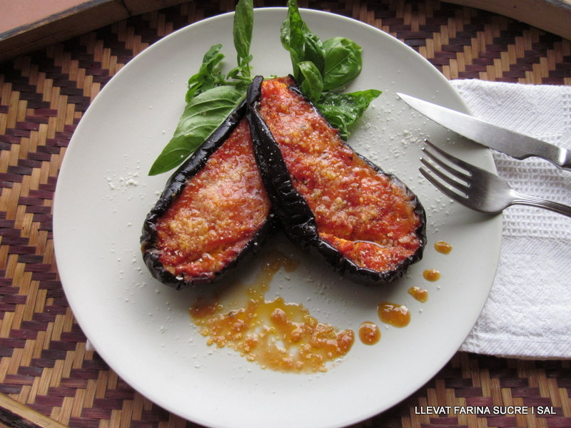 El temps de cocció del microones, ja sabeu que varia segons la quantitat que posem a coure. El temps que us he dit, es per coure una albergínia que pesi uns 400 grs. més o menys.