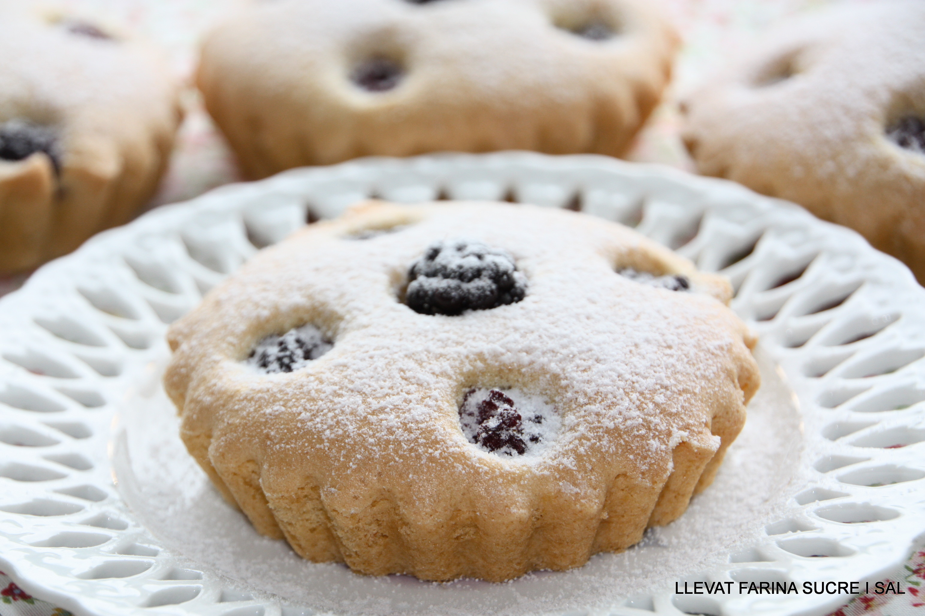 Repartir la massa, en els 8 motllos, posar les mòres al damunt, sense pressionar.