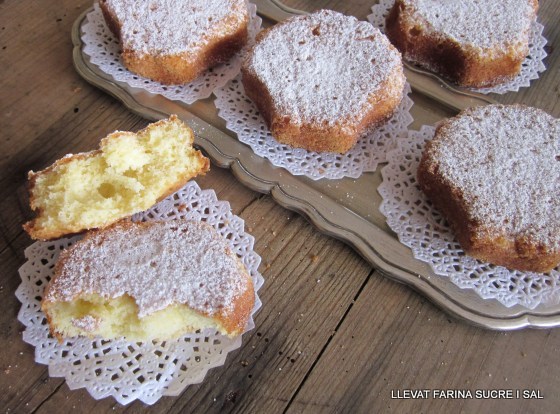 Untem i enfarinem els motllos, tan si són metàlics o de silicona.