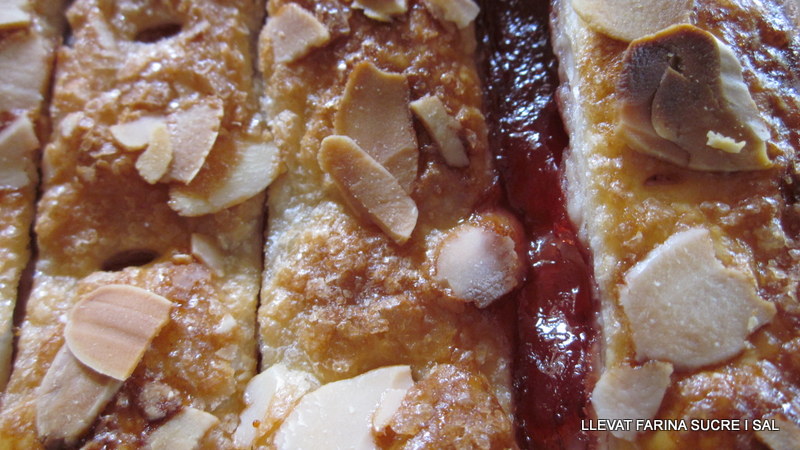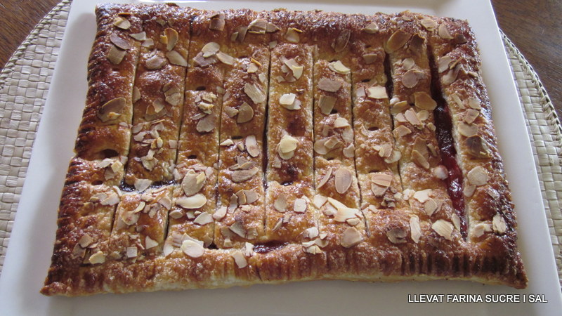 Escampem les dues cullerades de sucre per damunt, les ametlles filetejades i ja la podem enfornar 20 / 25 minuts, fins que estigui cuita i ben daurada.