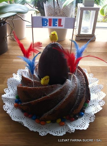 Amb floretes de sucre, amb les clàssiques plomes de colors i amb els pollets enclenxinats !!