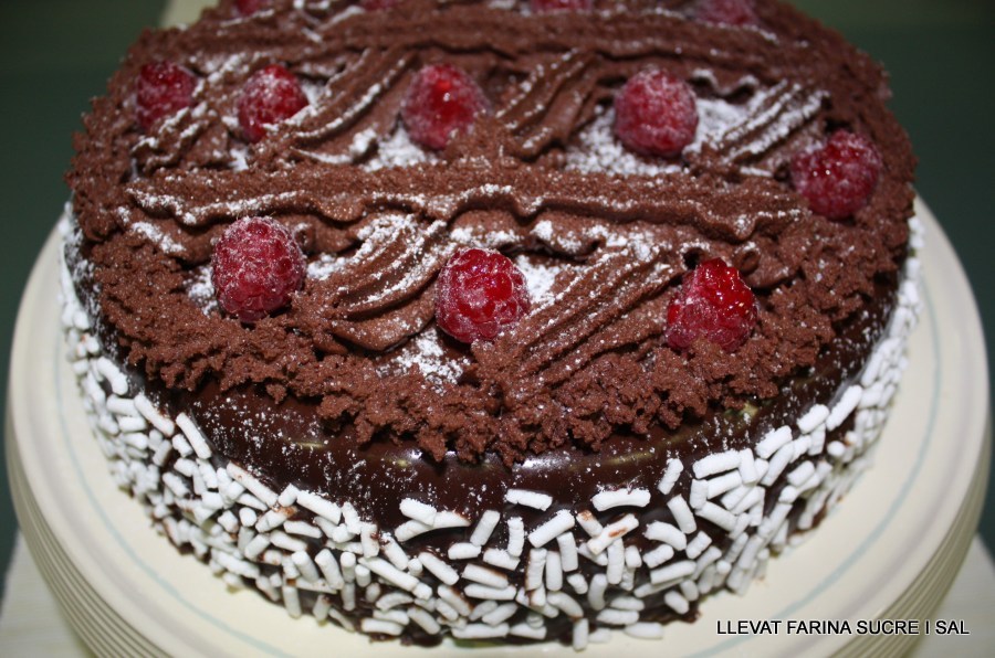 Posar en una mànega pastissera, la trufa i decorar el pastís.