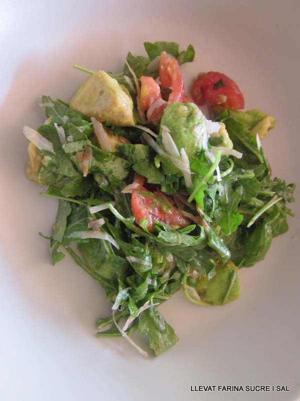En una safata posem tots els ingredients. els amanim i remenem amb cura, l’alvocat té tendencia a trencar-se.