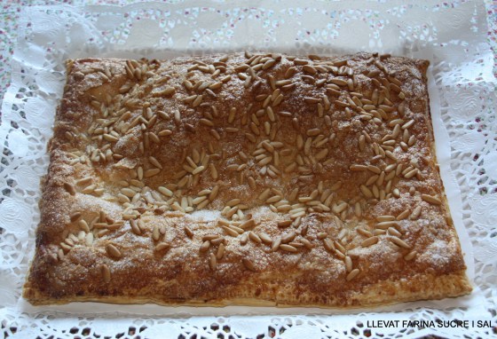 Coca de pasta de full farcida amb cabell d’angel, la recepta aquí