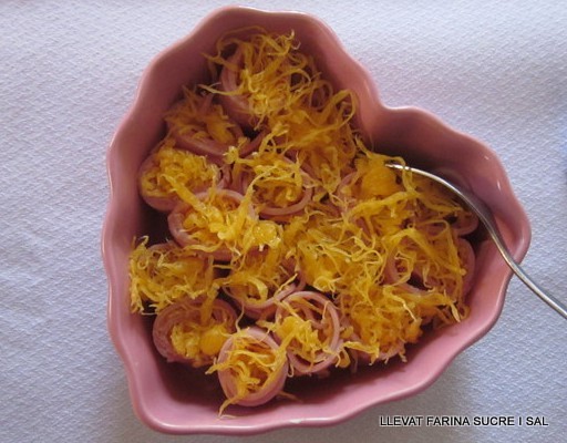 Farcim els talls de pernil de York, d’ou filat, i els anem cargolant una mica apretadets, els tallem amb un ganivet ben esmolat d’un gruix de 2 o 3 cms. i ja els tenim a punt .