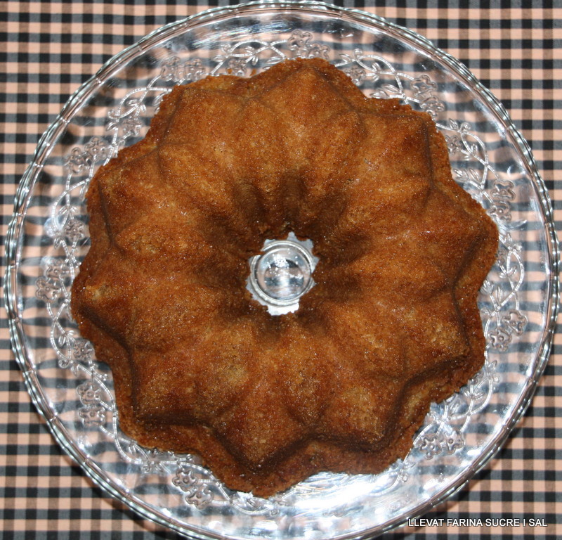 Un cop cuit, sense treure del motllo, punxar tota la superfície del pastís, abocar amb una cullera el xarop pel damunt i deixar reposar un parell d’hores.